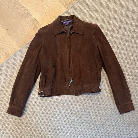 Selger denne Sandro semskede skinnjakken med frynser. Størrelse 40, passer en S/M/L - kommer an på looken man ønsker. Helt ny, lapper fortsatt på.