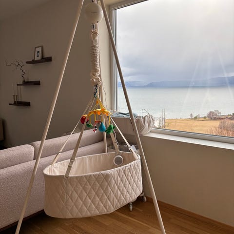 Den er pent brukt, og vi har alltid hatt laken på, og hatt sleepcarrier oppi.