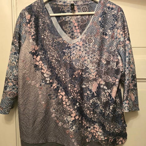 Bluse / topp fra Floyd str. L med ermer som kan være lange eller kneppes kortere.