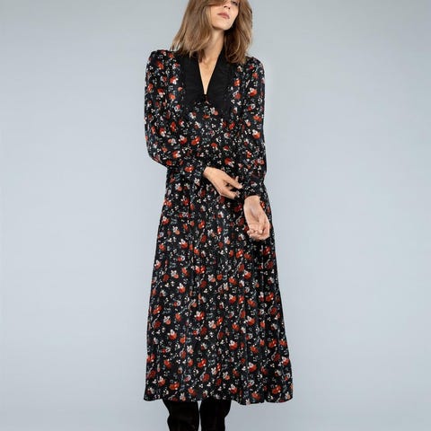 Søt kjole i en delikat silke, bomull og viskoseblanding. Modellen er designet med korte puffermer, dyp utringning med fine detaljer på bysten og glidelås bak. Faller i en noe rett til lett a-fasong. Bildene er lånt fra Miinto.no