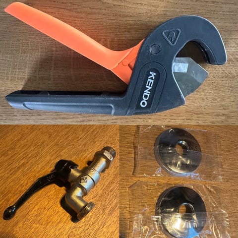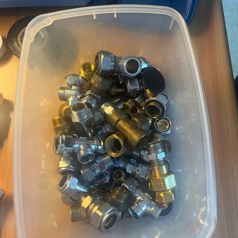 En liten samling med reparasjonsmuffer i forskjellige størrelser. Disse kan skrus rundt en rørlekkasje og redde situasjonen langt på vei.