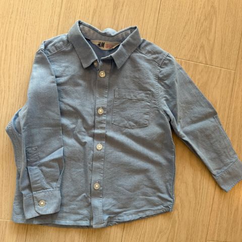1 lyseblå kortermet skjorte, str 98