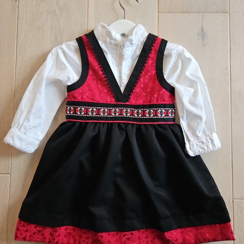 Baby bunad/festdrakt fra Reflex i str 80 til jente. Følger med body med knepping i skrittet i str 80 Denne har aldri blitt brukt