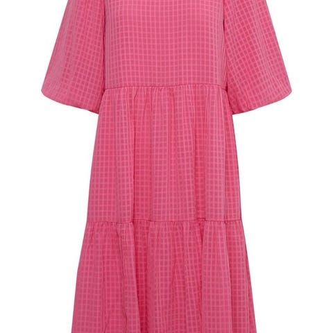 Lappen er tatt av og kjolen vasket, men aldri blitt brukt. Trenger å strekkes ut litt med steamer. Bilde en og to er lånt. Følger med ubderkjole. Størrelse 38.
