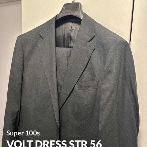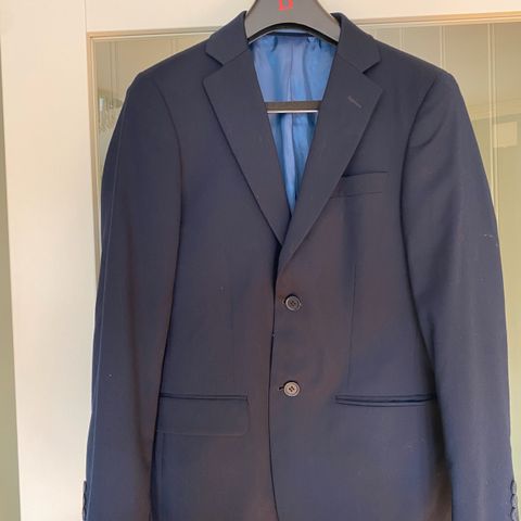 Blå dress i blanding av ull 50% og polyester.