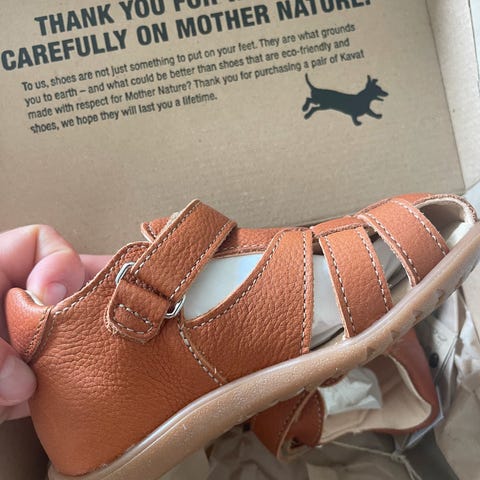 Pent brukt skinnsandaler fra Kavat. Brukte som innesko i barnehagen.