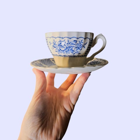 Vintage kopp med skål – japansk blå/hvit porselen