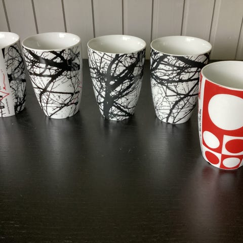 Et krus fra Menu med design i sølv og hvit av Verner Panton. (Pernille Vea har formgitt kruset.)