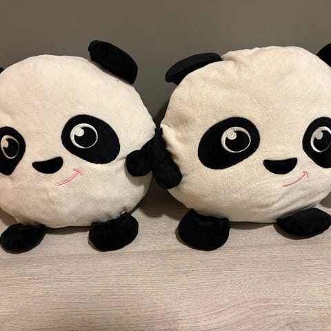 Pent brukte kosedyr fra Suismallows . Den ene panda fra annet merke kjøpt i Spania .En er vendbar /2 i en .