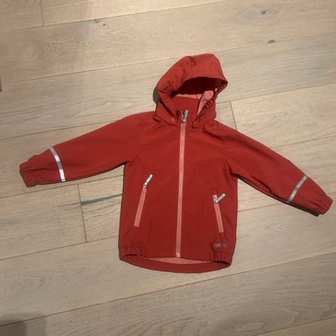 Pent brukt softshelljakke i nydelig blåfarge med lommer og avtagbar hette.