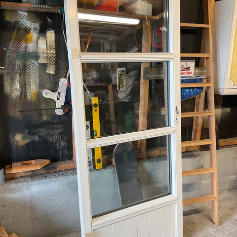 3 stk. Terrassedører 89x209 Venstrehengslet sett innenfra.