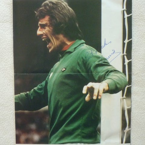 autografene fra flere Everton-spillere i forbindelse med privatkamp i Norge i 1978. Jeg klarer ikke tyde alle navnene, men det er til sammen 10 navnetrekk