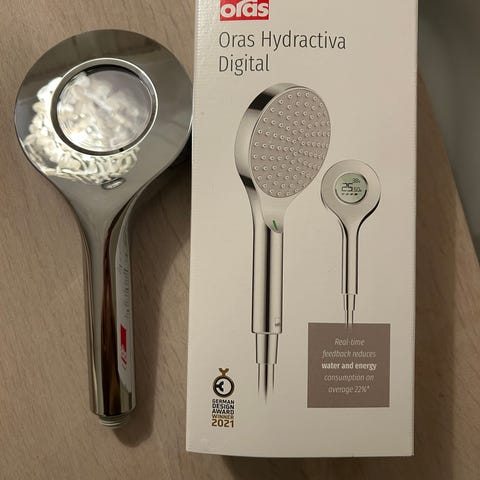 Nytt og ubrukt dusjhode av høy kvalitet fra kjente Hans Grohe. Modellen heter "Raindance Select 150" og har mulighet for innstilling av ulike vannstråler.