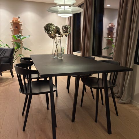 8 stk hvite Hay spisestoler med svartlakkert eikeben selges kr 1000,- pr stk (Nyprisen ca kr 4000,-)