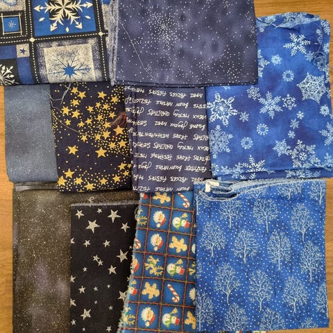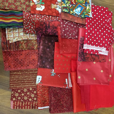 I denne pakken er det ca 1,2 kg. Det meste er bomullstoff.