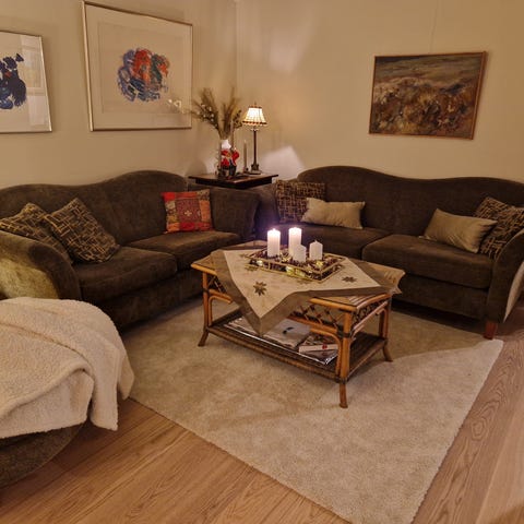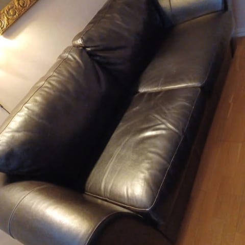 Sofagruppen er 4 år gammel og i god stand. Den har vært pent brukt og kommer fra et røykfritt og dyrefritt hjem. Skinnet er lett å holde rent og gir både stil og komfort.