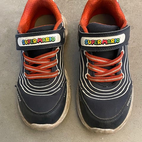 Robuste og slitesterke sko fra Geox. Blinkeskoene har av-og-på knapp. Mønsteret under skoene har litt slitasje, litt slitt på skotupp, ellers er de i god stand.
