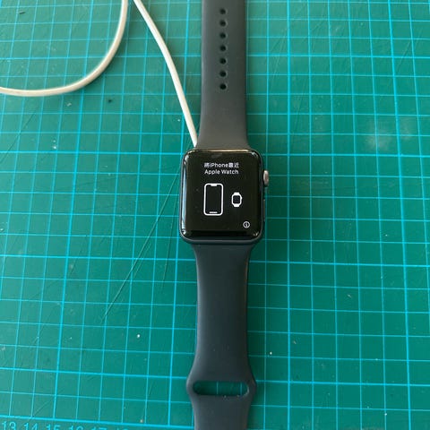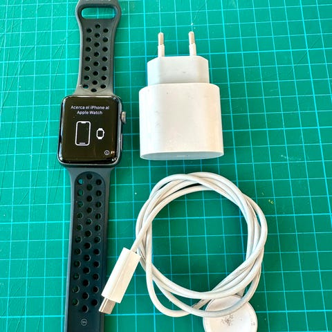 Apple Watch Series 3. 42mm, medium armband och 89% batteri hälsa.