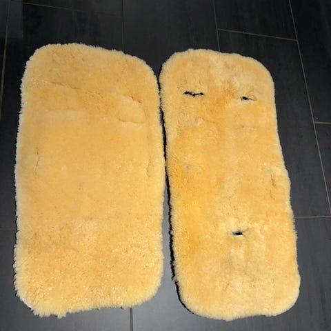 Yngri lammeskinn til vogn selges. Lite/pent brukt. En liten misfarging, men kjennes ikke på lammeskinnet.