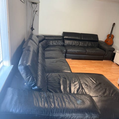 Pent brukt hjørnesofa til salgs. Denne var en italiensk hjørnesofa i sort skinn kjøpt hos Skeidar. Mål 310x208. Sofaen er 2 delt og må hentes i Drammen.