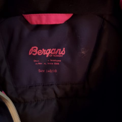 Selger ytterjakke som passer til ei liten jente. Størrelse 110 står det.