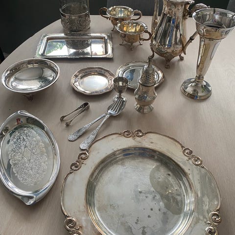 Sølv plett fat, brett, boller mm