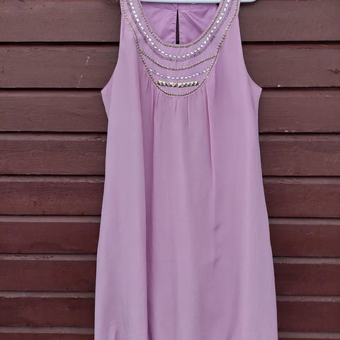Nydelig rosa kjole med fòr i skjørtet , fra «Vila». Størrelse xs, men passer nok også en small. Veldig behagelig kjole å ha på. Lite og pent brukt (2gang) Selges kr 390,- Hentes sentralt i Tromsø.