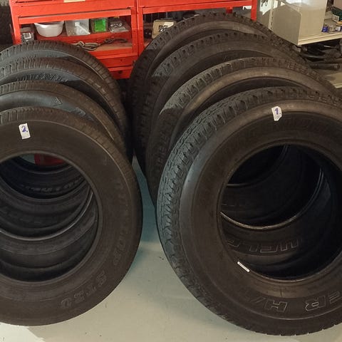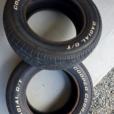Dekkene er nye og ubrukte men har ligget lagret en stund.