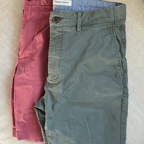 Selger to shorts som kun er brukt én gang eller to hver. De er små i størrelsen og for små for meg som vanligvis bruker 34. Det står large 33-36 i livet men siden Uniqlo er asiatisk mistenker jeg str er mindre der borte . Kjøpt i London i fjor.