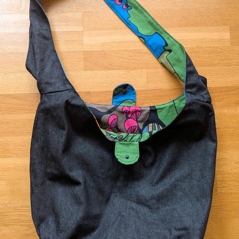 Stor ubrukt veske, bredde 47cm. Høyde med hank 39cm. En mini flenge under se bilde.