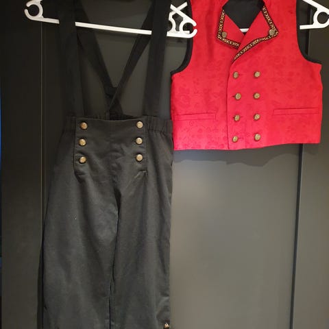 Selger 2 stk festdrakter fra Lindex I str 122 og 134. Forkle og lue følger med begge draktene og den 134 har også en skjorte. Ett par løse tråder, men kan fint draes inn på innsiden.