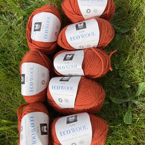 2 hele nøster Highland Wool. Begge nøstene har samme farge- og partinummer.