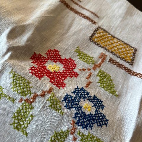 Nydelig brodert duk med korssting