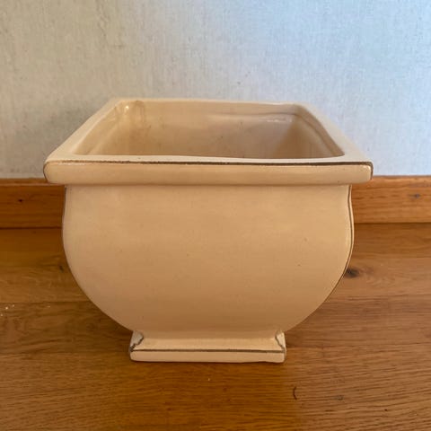 Keramikk potte i beige. Inne/ ute. H. 18 x D. 19 . Pent brukt, god stand.