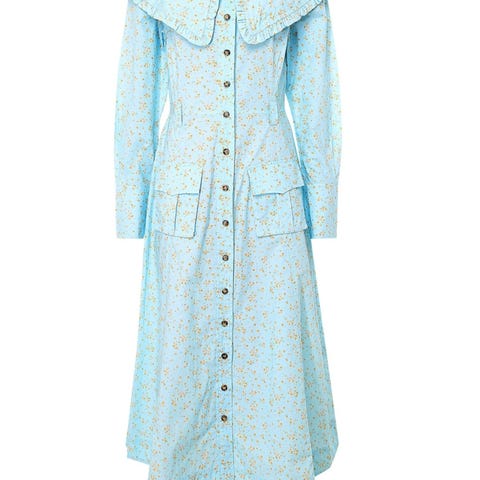 If you're unafraid of bold colors and have a penchant for sixties silhouettes, then be sure to add GANNI's mini dress to your wish list. It's cut from recycled wool dyed with 'Flash Green' flecks and has a two-way zip fastening through the front. Echo the Fall '21 styling by layering a long-sleeved top underneath.