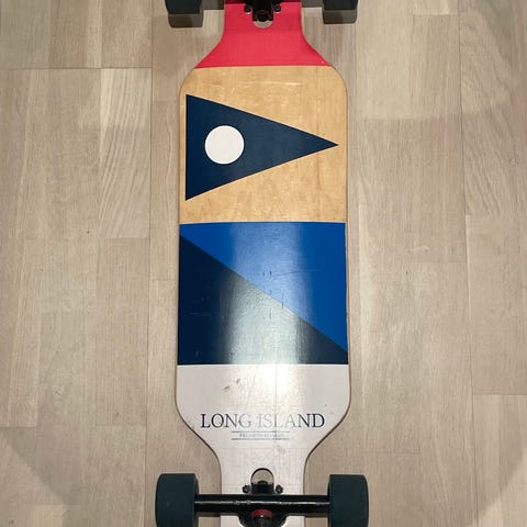 Ubrukt longboard selges da det ennå ligger i plasten og ikke blir brukt. Selges til noen som gir den mer kjærlighet