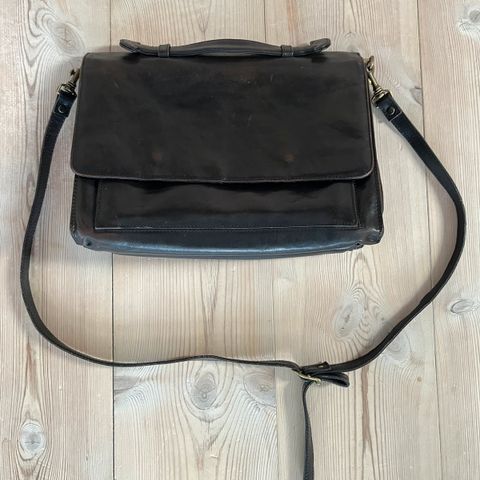 Mørk blå Adax veske. Ikke brukt, men har noe patina fra butikk (se bilder)