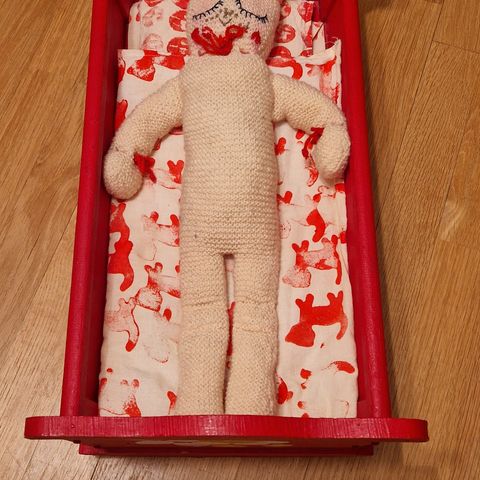 En unik og tidløs dukkeseng, håndlaget med bærekraftige/gjenbrukte materialer.