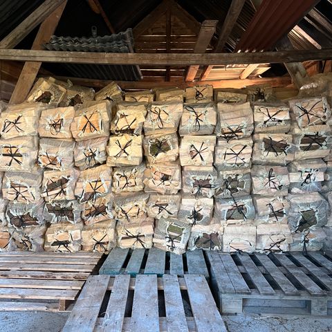 Vedkubber av bjørk eller blandet treslag av løvtrær, pakket i nettingsekker på 1,5 kubikkmeter hver. Egnet for bruk som oppvarming i peis eller vedovn. Tørr ved, klar til bruk. Har noen 60 i bjørk igjen