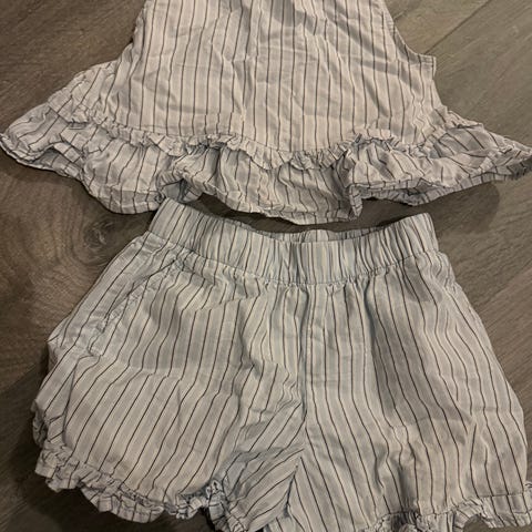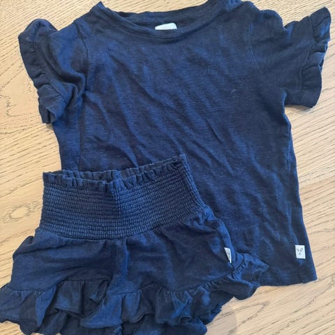 Selger ubrukt lyseblått sett i lin fra ella&il i str. 5-6 år (litt liten i størrelsen). Shorts og topp. Lappen er enda på. Nypris 1100,-. Bilde nr. to er lånt og viser settet på, men i mørkeblå.