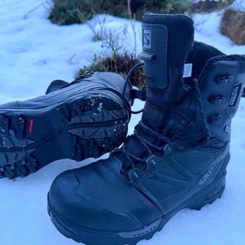 Terrengsko fra Salomon. Ikke brukt så mye utendørs, men er laget for terreng og utendørs forhold. Godt brukt, men mye bruk igjen. Modellen er unisex og passer derfor til herrer og damer. Svært tettsittende, og derfor "true to size".