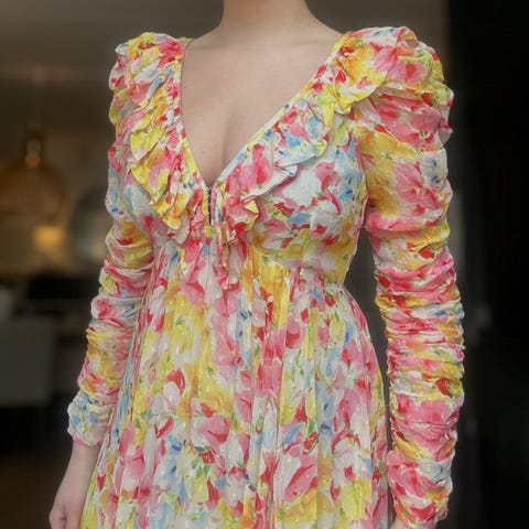 Størrelse small, men passer både small og medium grunnet strikk i livet.