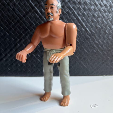 Sato figur fra Karate Kid filmene..Original fra 1986 Columbia Pictures Remco production..fot knappen virker..ikke armknappen..ingen synlig slitasje bortsett fra jakke merkene..se bilder..samsender ved flere kjøp..selger ikke med fiks ferdig...forskuddsbetaling på Vipps, kan hentes eller sendes med Posten..henvendelser med pruting blir ikke besvart