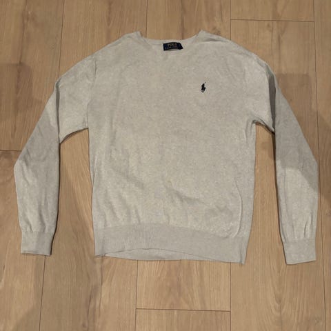 Grå herregenser fra Polo Ralph Lauren selges. Str S/P (small petite), custom slim fit. 100 % bomull.
