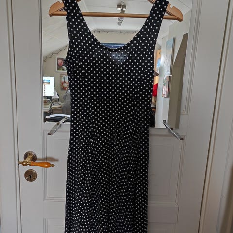 Sort sommerkjole m/hvite prikker selges. Det står ikke str inni, men det er M.