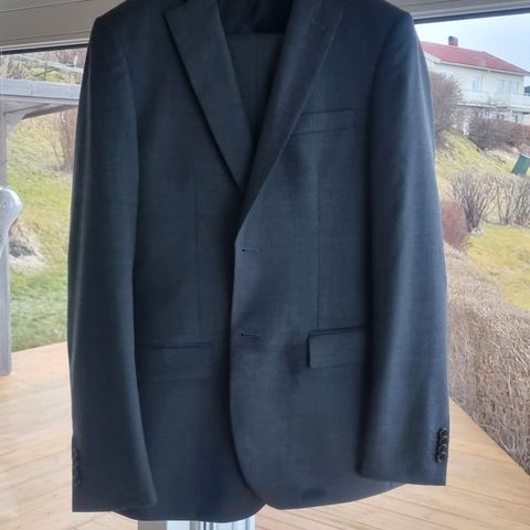 Pen sort dressjakke og bukse fra Dressmann selges. Svært lite brukt. Skjorte kan følge med 🌸.