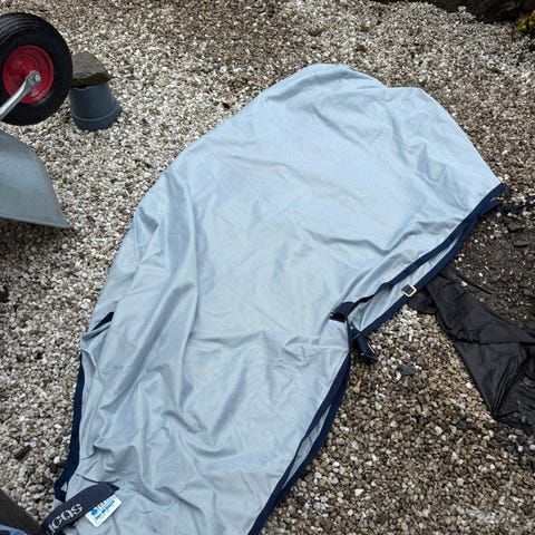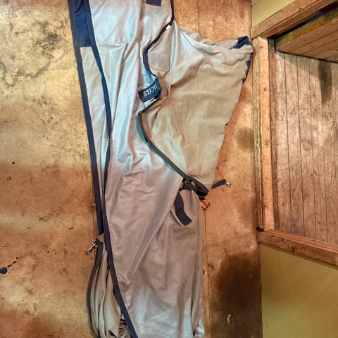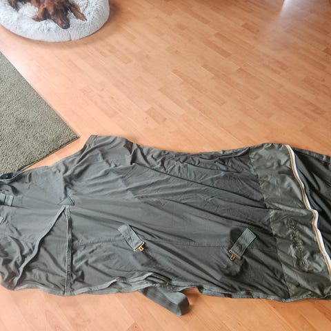 Fluedekken med avtagbar hals som er vanntett over ryggen. Helt ny, aldri åpnet. Str 145