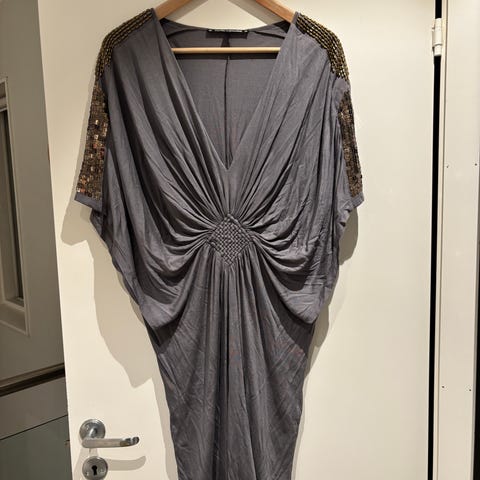 Hel og pen kjole med paljetter foran.