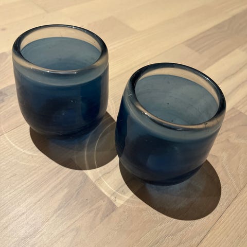 Blå telysholder 50kr
