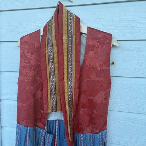 Flott hjemmestrikket bunad i vakre vårlige farger.